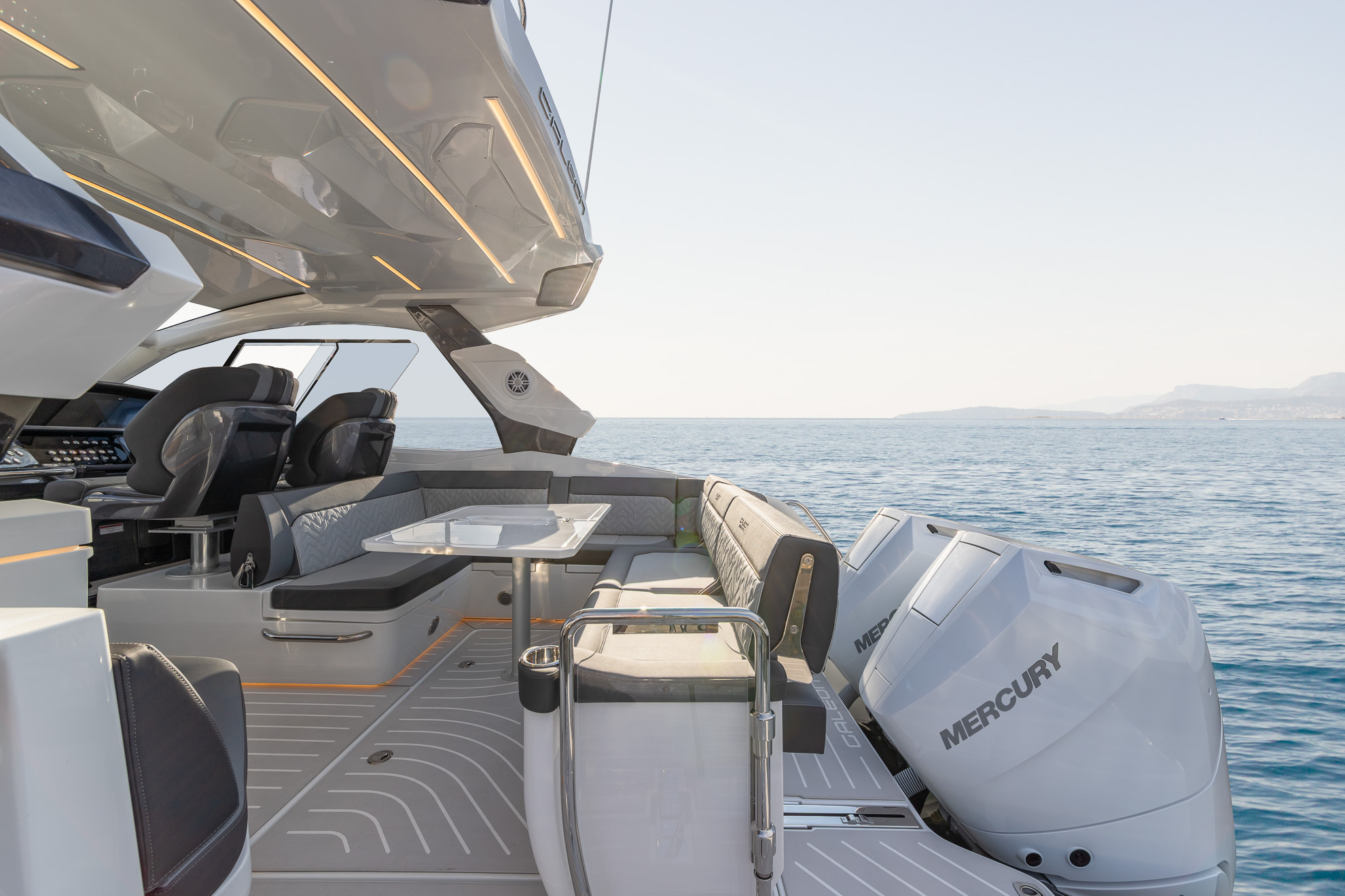 Reversible cockpit backrests offer versatile seating options, allowing passengers to easily switch between forward-facing views for navigation and aft-facing positions for socializing or relaxing. This flexible design maximizes comfort and makes the cockpit an inviting space for both cruising and entertaining on board.