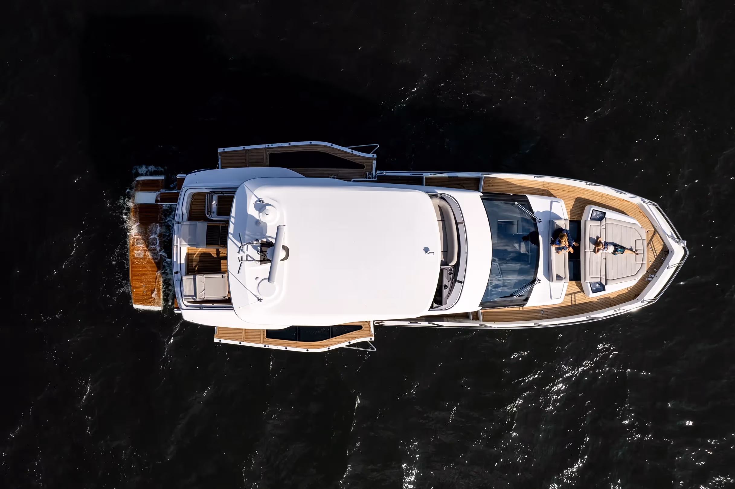 Experience the perfect balance of space, innovation, and comfort with this exceptional model. Its spacious and intelligently designed flybridge invites you to enjoy open-air cruising like never before – with ample seating, panoramic views, and effortless access to every area on board. Whether you're relaxing in the sun or hosting guests in style, this innovative and comfortable yacht offers everything you need for unforgettable moments at sea.