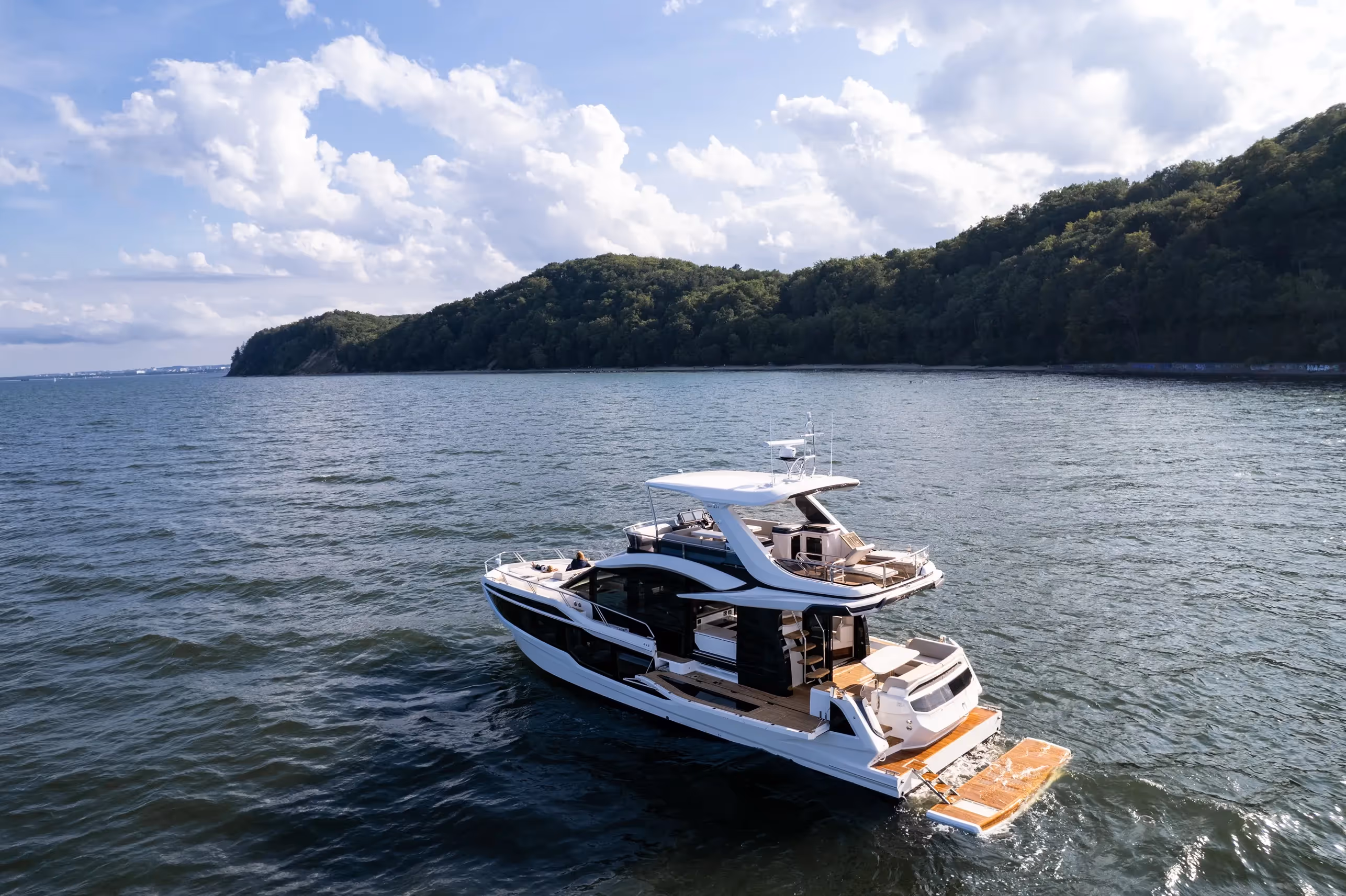 Smartly designed to maximize space, it offers effortless living on board with a sleek, modern aesthetic. The large upper deck is perfect for cruising, relaxing, and entertaining with family or friends.