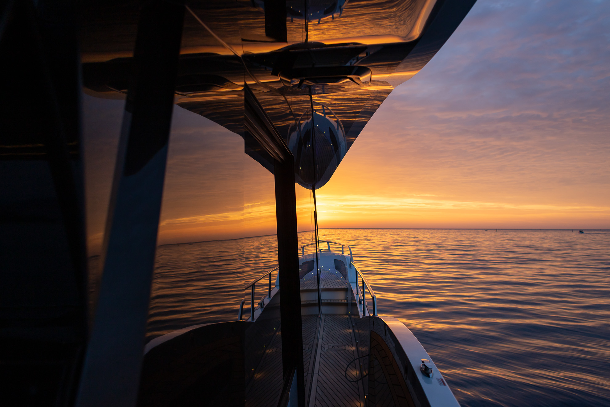 Aboard the 620 FLY, you can dine facing the horizon and experience nature in spaces designed to accommodate different activities – those who rest in the shade and those who swim, those who have an aperitif and those who sunbathe – creating memories meant to be shared.