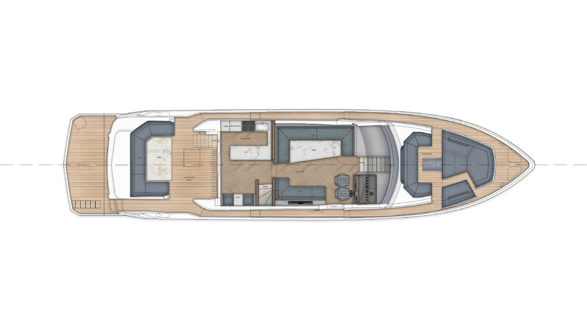 Combines the sleek profile of a coupe with an expansive upper deck social space offering 360-degree ocean views.